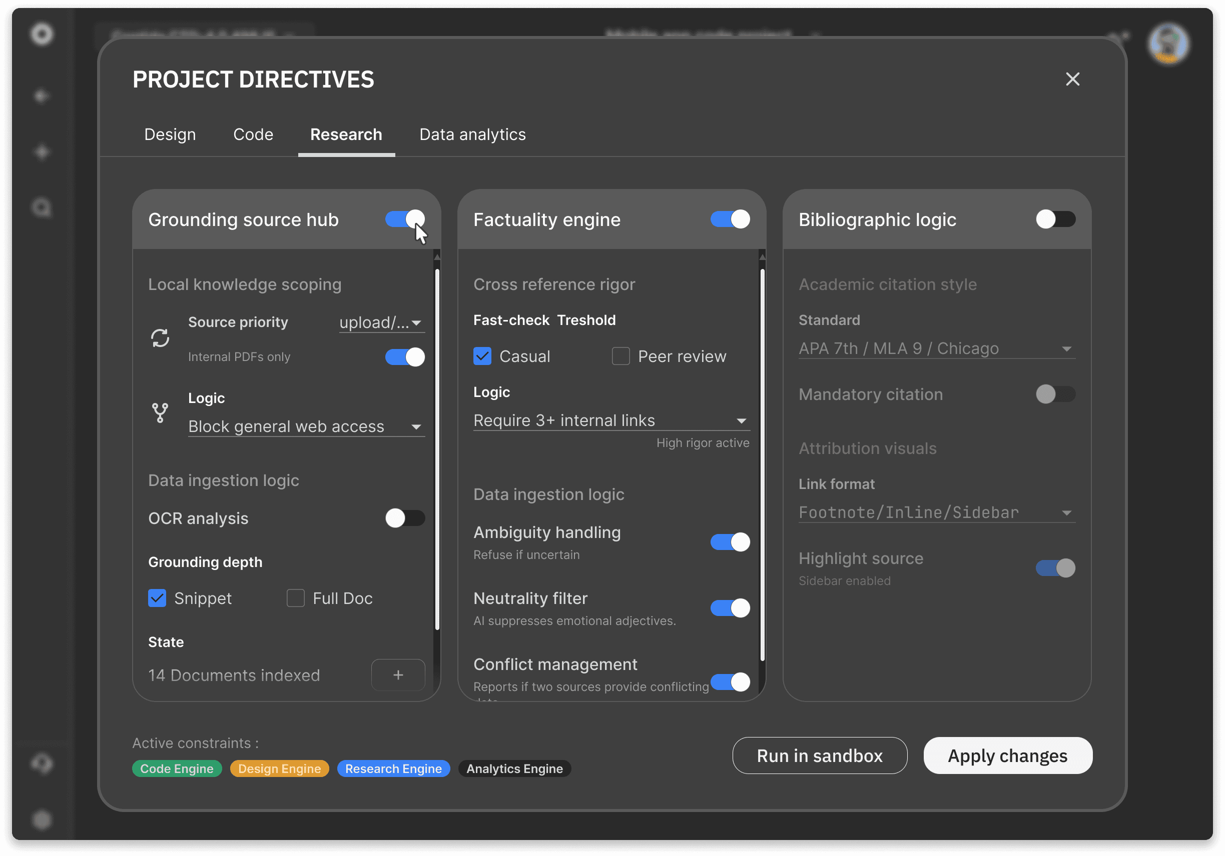 Before the research begins, the user defines how the project should think.