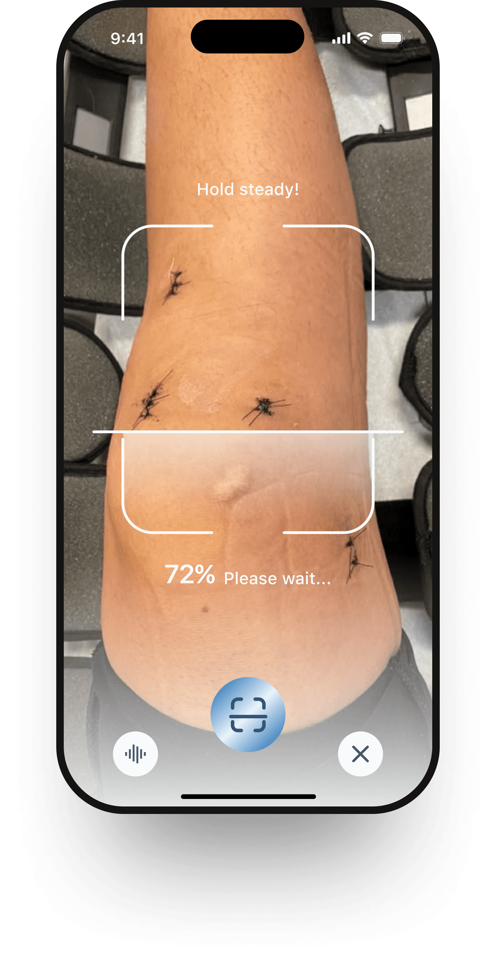 Patients can record symptoms in seconds : Text input, Quick-select options, Voice notes, or by uploading a photo.