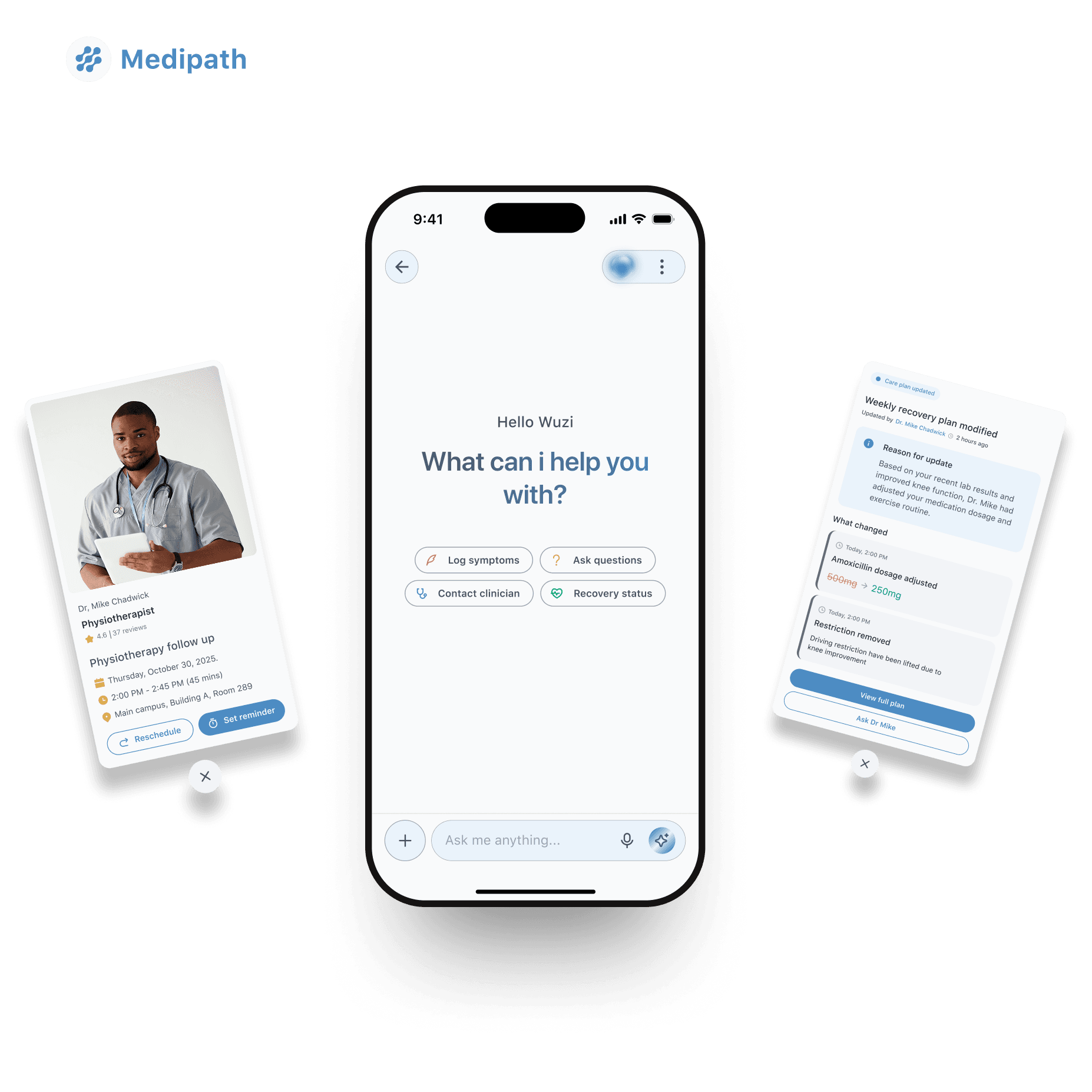 MediPath is an AI-powered patient recovery companion recommended by clinicians to support patients after hospital discharge. It helps patients manage their medications, track symptoms, and receive personalized recovery guidance, while providing optional progress reporting to doctors. .