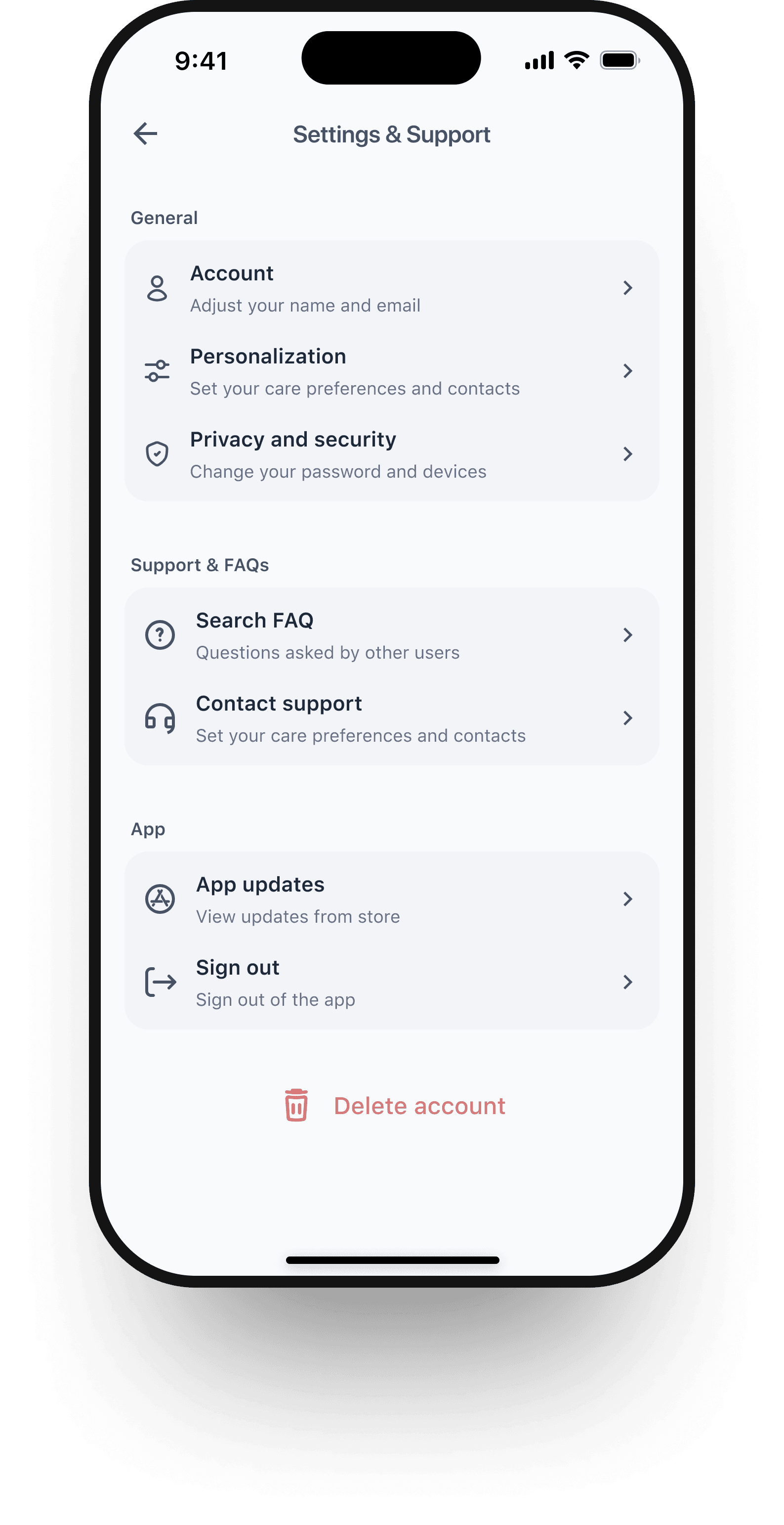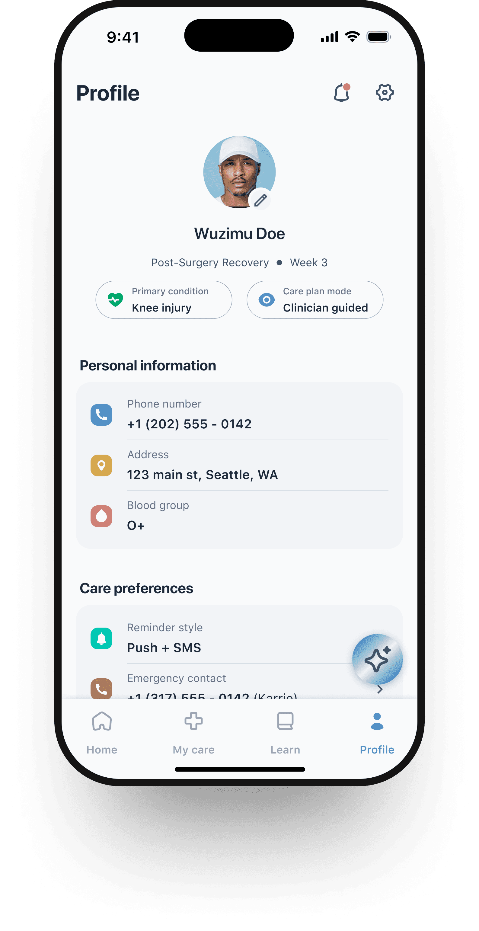 Profile & Settings: Customizable notifications and preferences, keeping care personalized.