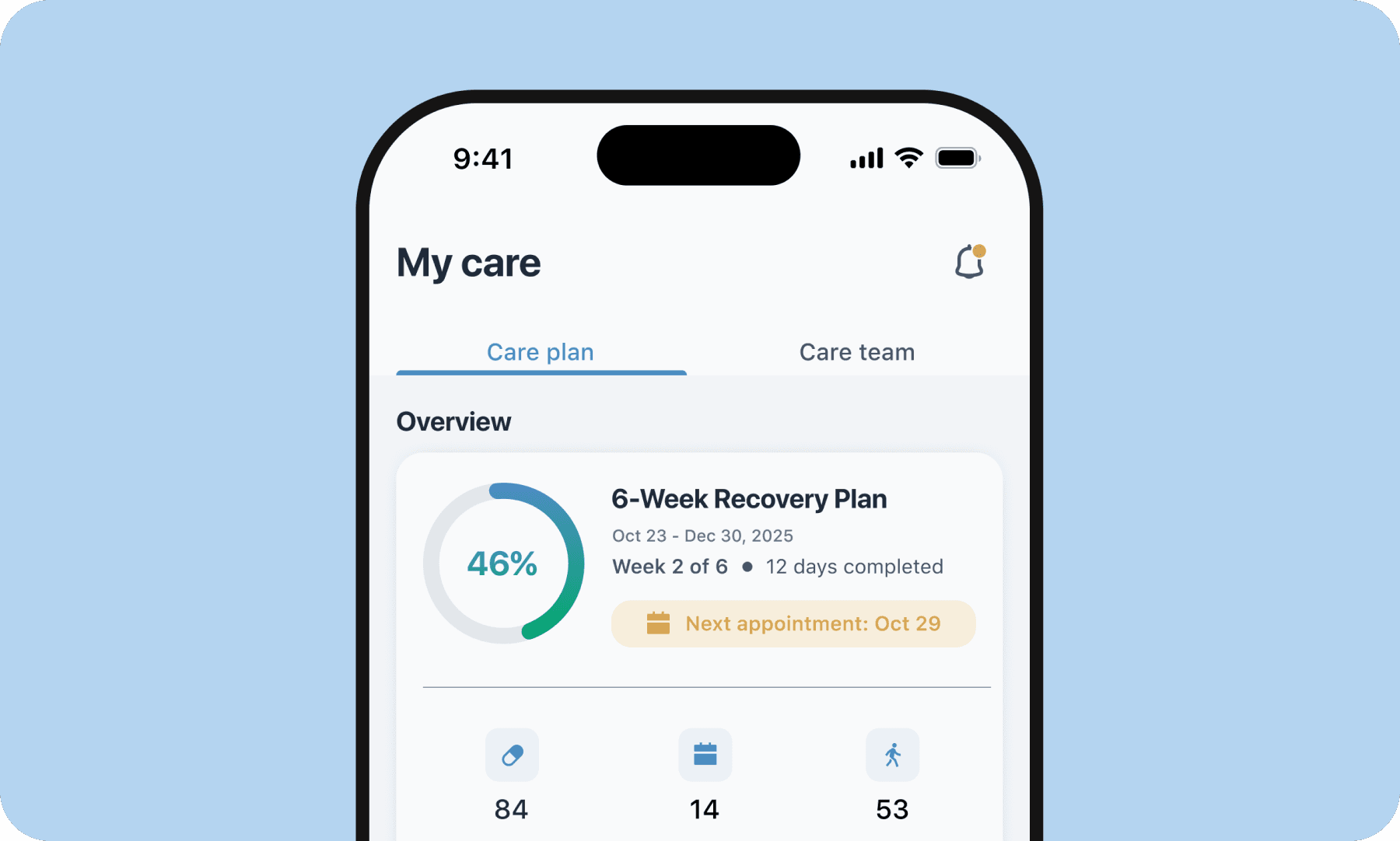 Supports daily adherence: Gentle prompts and visual progress cues encourage consistent check-ins.