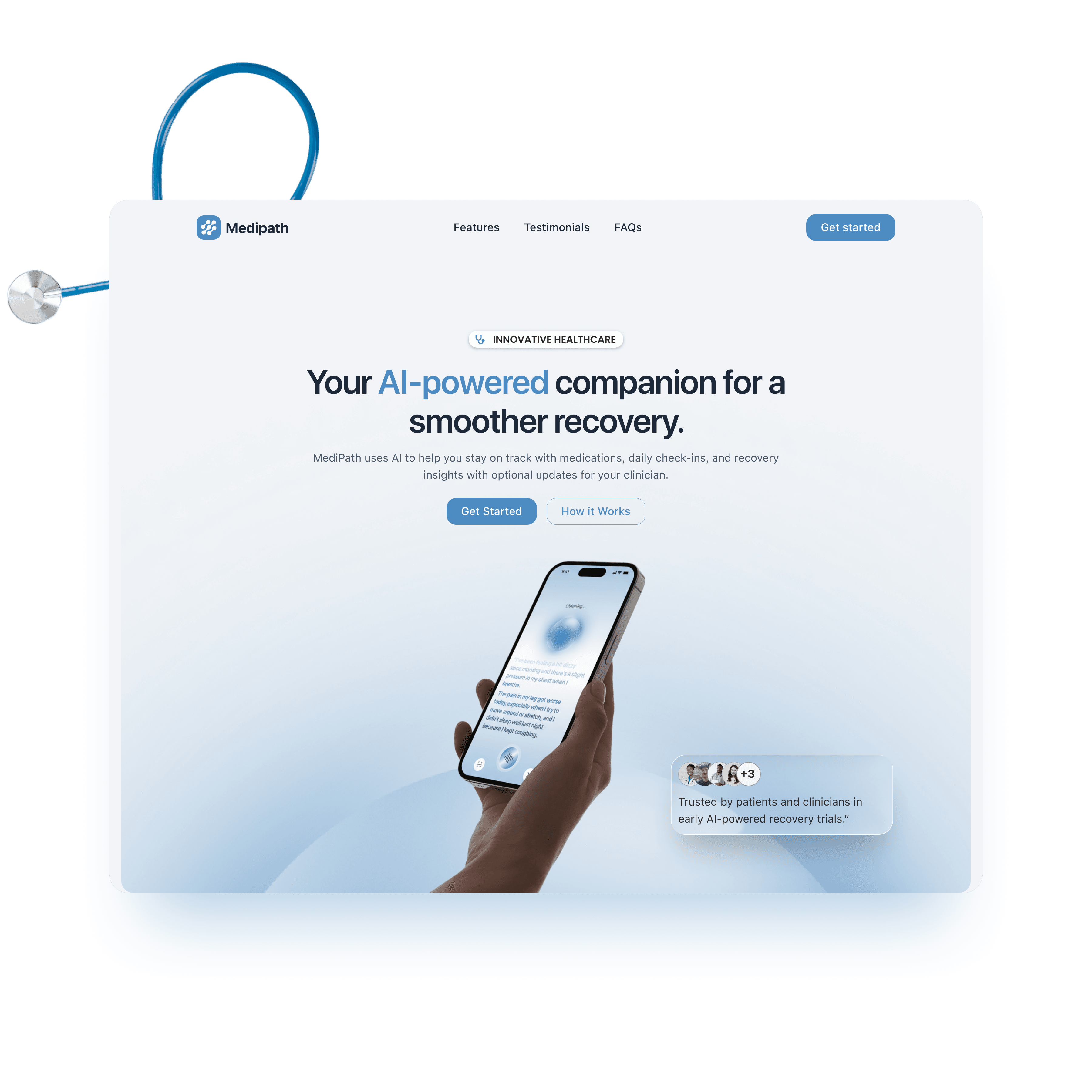 The challenge was to create a landing page that clearly explains MediPath and builds trust from the first scroll. Users needed to understand what the app does, why itโs safe, and how it supports recovery without feeling overwhelmed. The page had to simplify the message, highlight credibility, and guide users toward downloading the app with clarity and confidence.